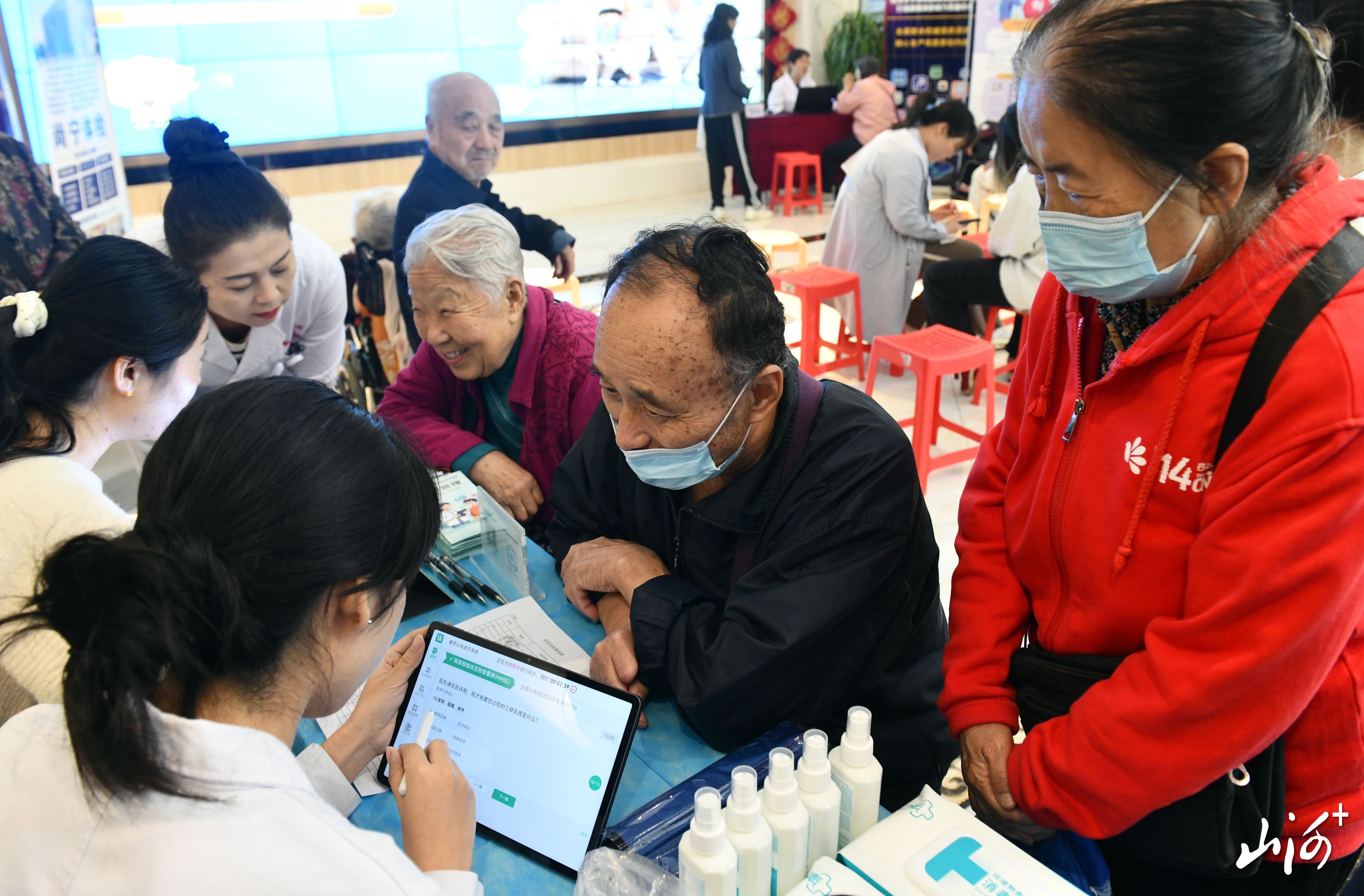 在量表测试区,对于要不要做MMSE(简易精神状态评价量表),居民们开始出现两极分化:“我还没糊涂呢,用不着做!”“做一个吧,图个安心。”而居民胡先生就成了现场第一个“吃螃蟹的人”。