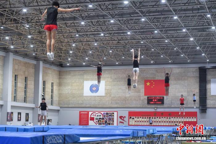 软硬件设施也在提档升级。何伟华介绍,在体彩公益金支持下,蹦床馆近年来完成了从国际标准蹦床器材到录像视频分析反馈系统的全方位升级,12张专项训练网加1张坑网,可同时支持30人进行训练。与此同时,队伍在体能恢复、医疗防护、心理调适与餐饮保障等方面也全面跟进,让队员全身心投入备战。