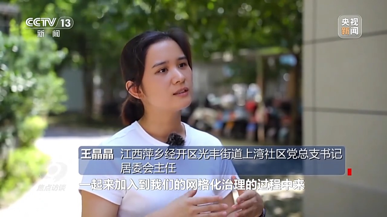 江西萍乡经开区光丰街道上湾社区党总支书记、居委会主任 王晶晶:一个支部有问题,共建的支部站出来,我们不是在单打独斗,一起加入网格化治理的过程中来,然后推动社会基层治理,推动小区更和谐发展。