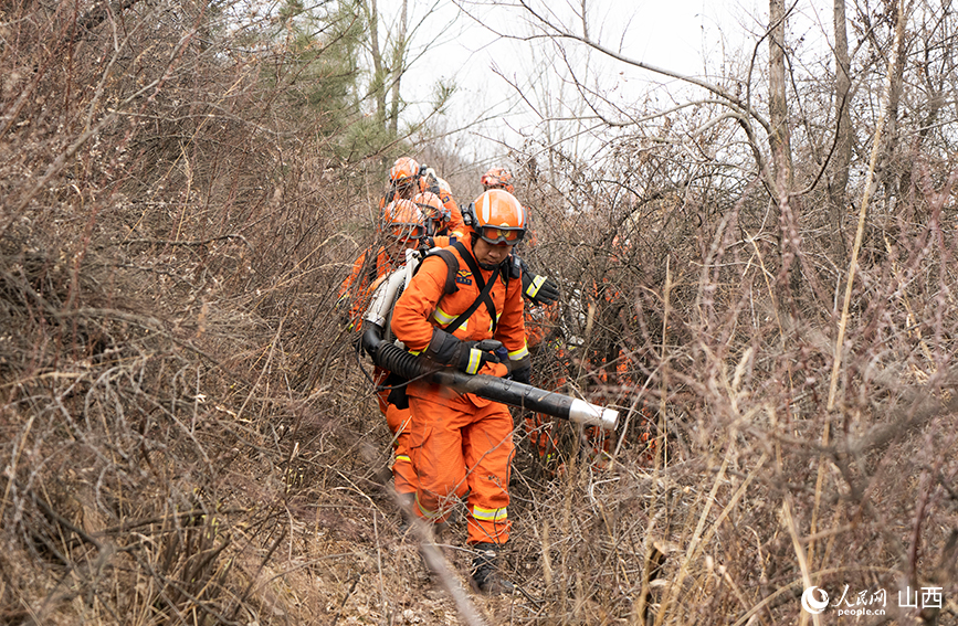 “山西山多,而且多是土石山,断崖多、林密、风大。”杨棕策是四川人,2016年9月入伍,2023年队伍组建时从黑龙江抽调过来,是第一批进驻山西的骨干,这次是第一次来古交驻防。“古交是山西省国家级森林草原火灾防治重点县之一,山连着村,村靠着山,防火是头等大事。”