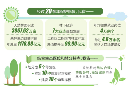 天然林是黄河流域生态安全屏障的主体,是山西生态系统的重要组成部分。经过20余年保护修复,我省天然林面积达3967.62万亩,生态、经济、社会效益协同释放,森林生态效益价值年总量1178.88亿元;林下经济7大业态蓬勃发展,工程区二期国内林业产业总值提升至99.90亿元;年均提供就业岗位4万余个,带动4.6万余名脱贫人口稳定增收。