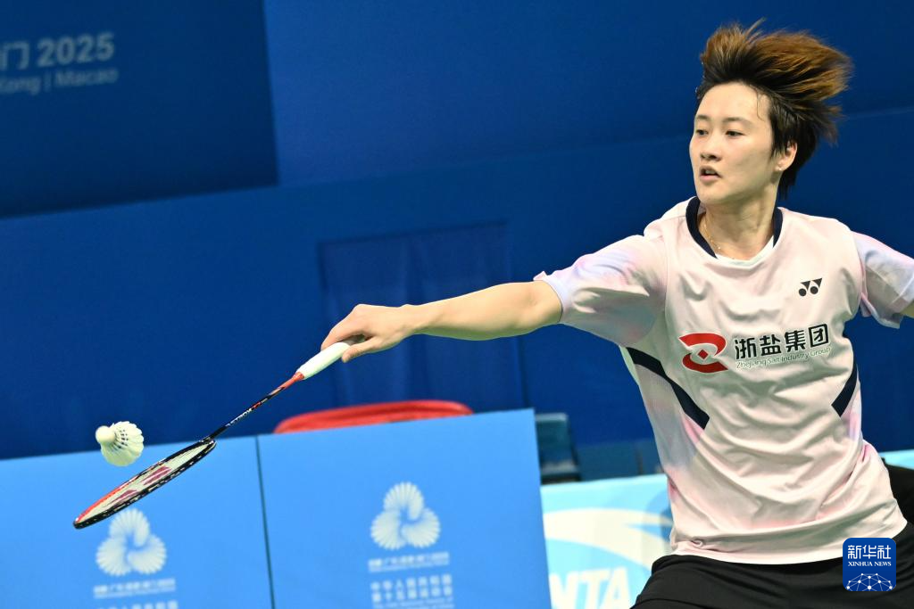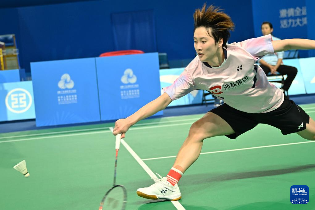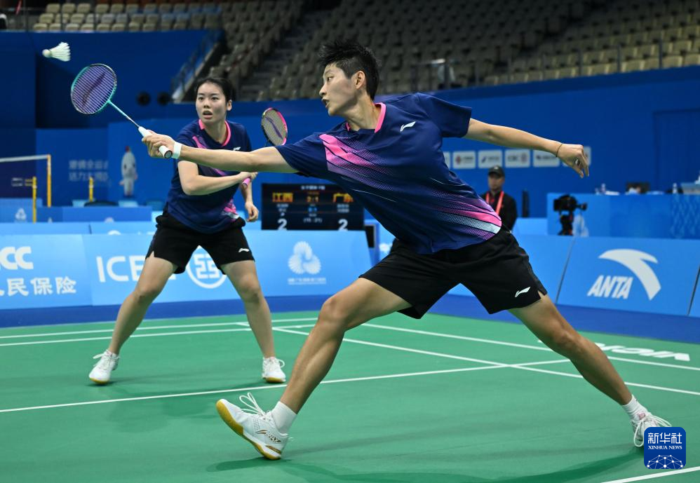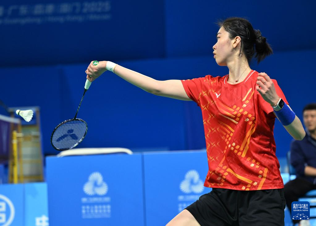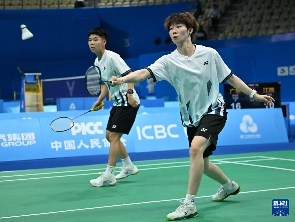 当日,第十五届全国运动会羽毛球女子团体小组赛在深圳举行。新华社记者 李紫恒 摄