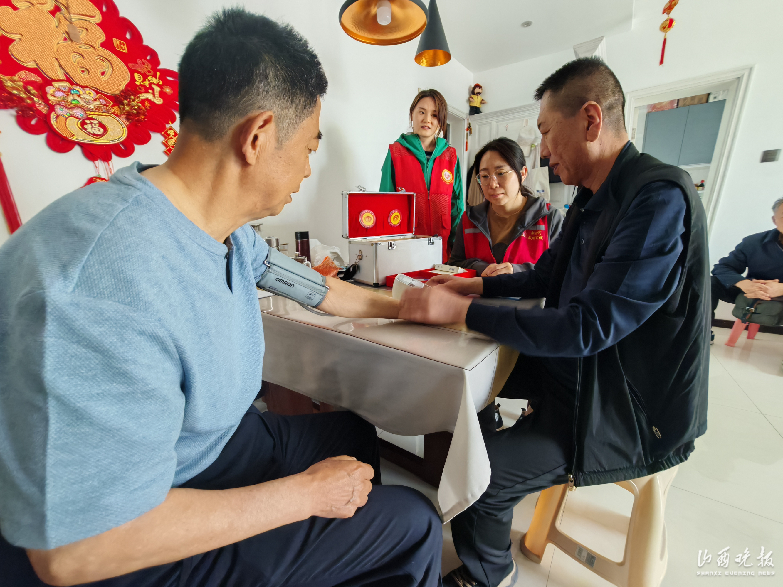 在此后的两个月里,秦洋都会固定在每周三上午,带领由社区工作人员、社区党员志愿者组成的服务队,并带上方便出诊的便携式医疗小药箱,为小区特殊人群、高龄老人开展血压监测、心率检测等基础诊疗服务,将专业医疗资源从医疗机构延伸到居民家中。