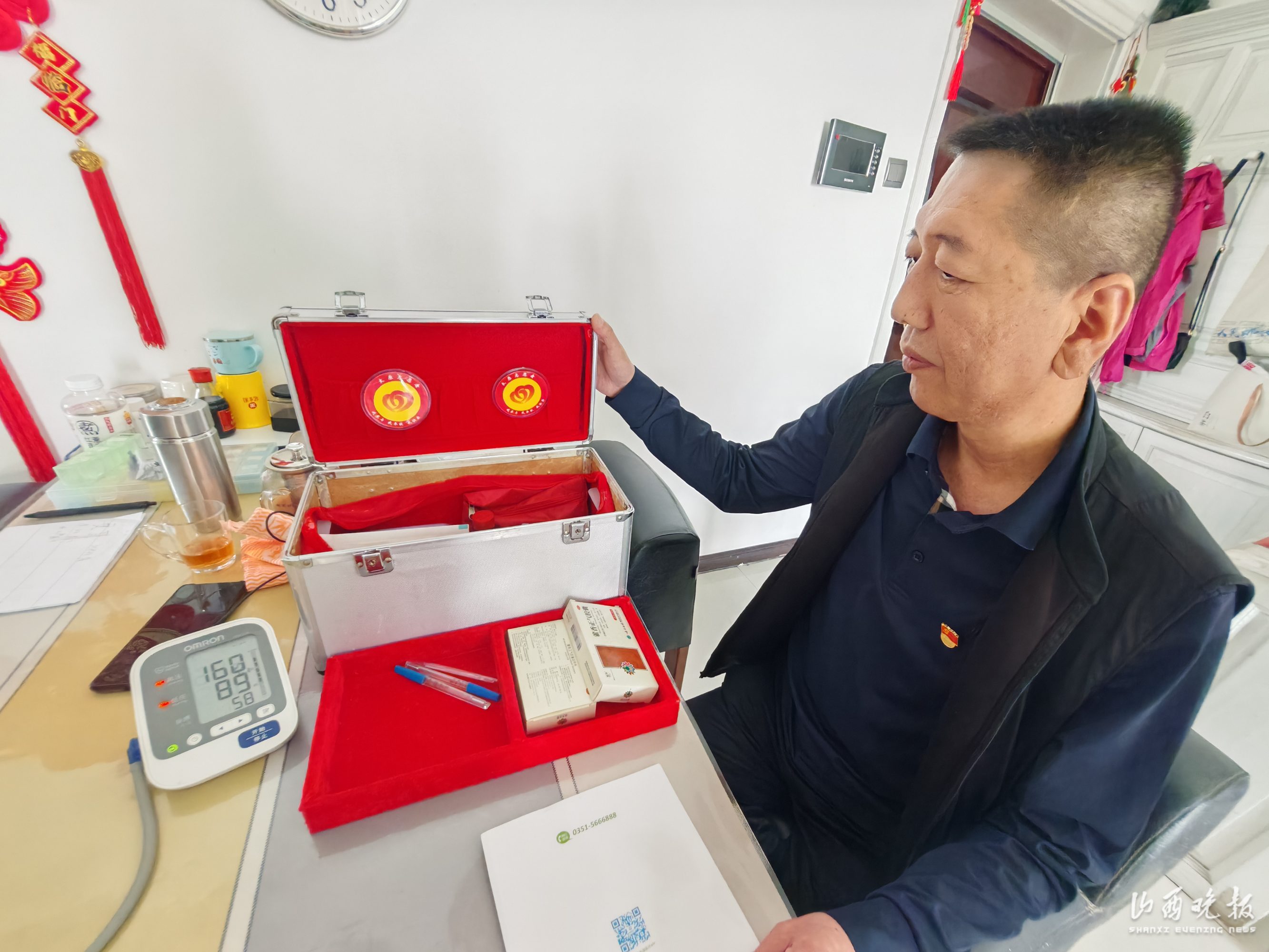秦洋,52岁,太原市和谐医疗健康中心影像科医师,小店区平阳路街道汽造社区居民,还是一名拥有二十多年党龄的老党员。今年3月初,秦洋无意中通过小区微信群,看到了社区正在开展的“银龄守护”认领活动,他便第一时间向社区报了名,并在社区工作人员的引导下,组织社区志愿者共同开展“流动药箱进百家”志愿服务活动,为社区居民免费提供上门诊疗服务。