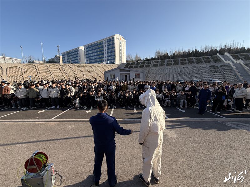 12月18日,开发区消防大队将消防知识课堂搬进了山西工程技术学院,为该校千余名师生组织了一场内容丰富、形式生动的消防培训演练活动。