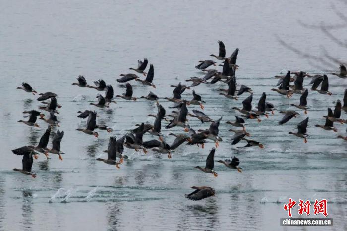 冬日时节,白天鹅、大雁等各类水鸟悠然聚集山西长治襄垣宝峰湖,声声雁鸣,清脆悠远,为冬日的襄垣注入无限灵动与生机。 郭文斌 摄