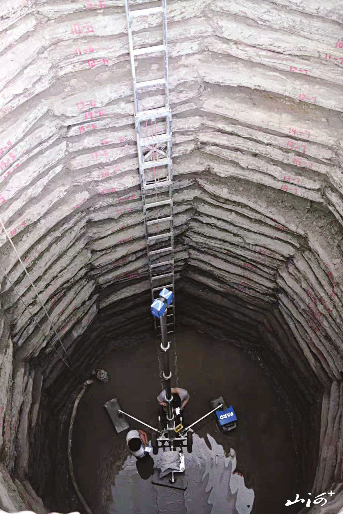 考古人员对古井进行三维扫描。