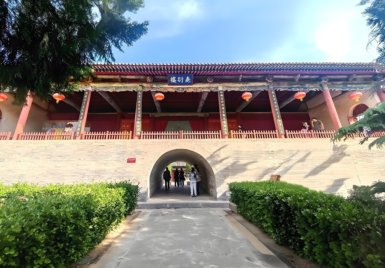 正对三大殿的,便是始建于元代、清康熙年间更名为“奏衍楼”的古戏台。“奏”为奏乐献艺,“衍”通“演”为戏曲展演,其名便精准道出了这座戏台“演戏酬神、祈福纳祥”的核心本义。