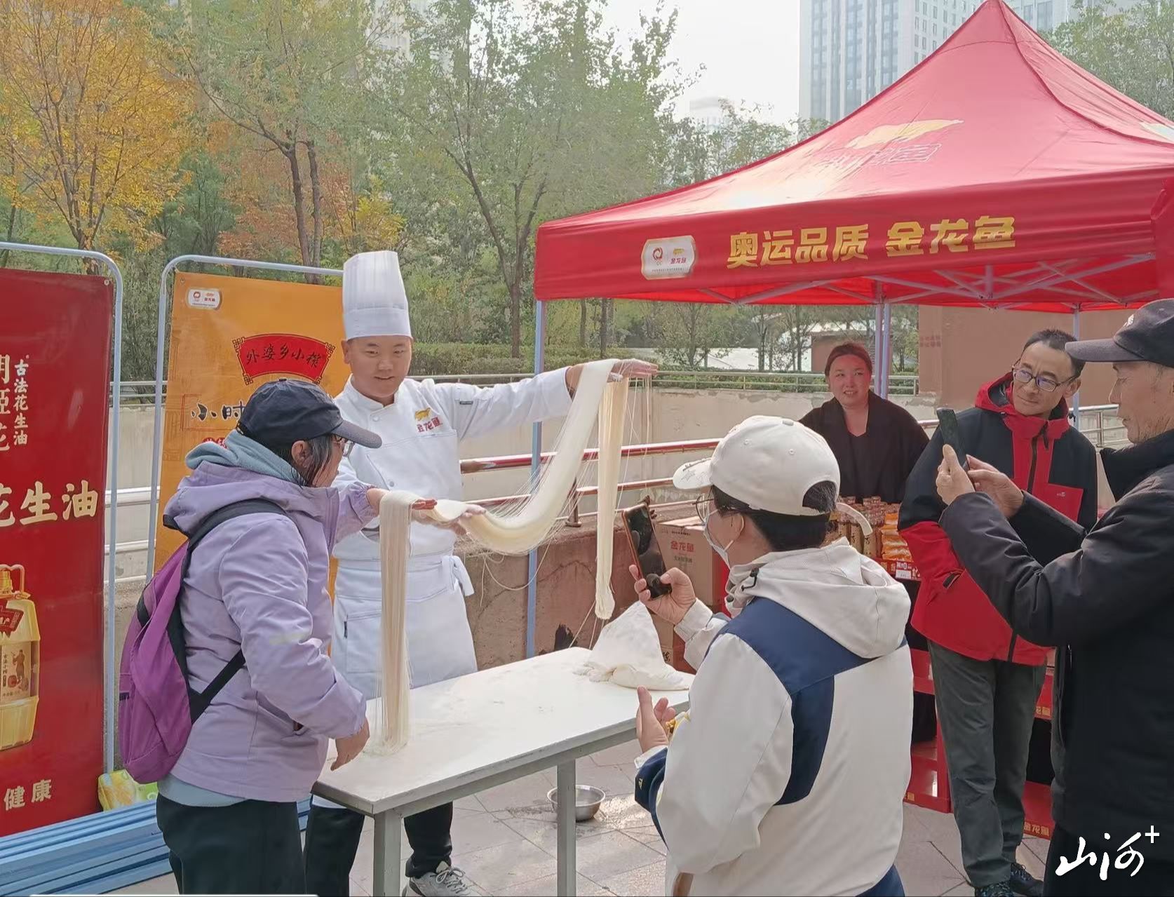 试吃体验区前更是成为活动的“人气焦点”,现场增设的拉面展示环节格外吸睛——师傅手握参展的高筋面粉制作的面团,双手灵活抻拉、甩动,面团在手中瞬间变成细如发丝的拉面,下锅煮熟后搭配用双低菜子油调制的汤底,香气瞬间弥漫开来。附近围满了驻足观看的居民,大家纷纷拿出手机拍摄,不时发出“好厉害”的赞叹。除此之外,工作人员还现场用参展粮油制作美食:用黑土地大米蒸出的米饭清香扑鼻,用全麦面粉制作的馒头松软可口,刚出锅便被居民争相品尝。“这大米煮出来的饭太香了,拉面也筋道,我要赶紧买袋大米和面粉回家。”居民李女士品尝后当场下单,直夸产品品质好。