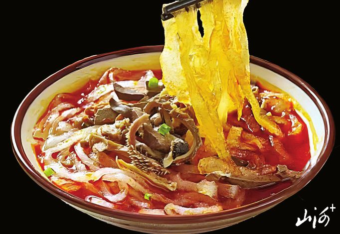 以白面擀制而成,酥软滑爽,汤鲜味浓。