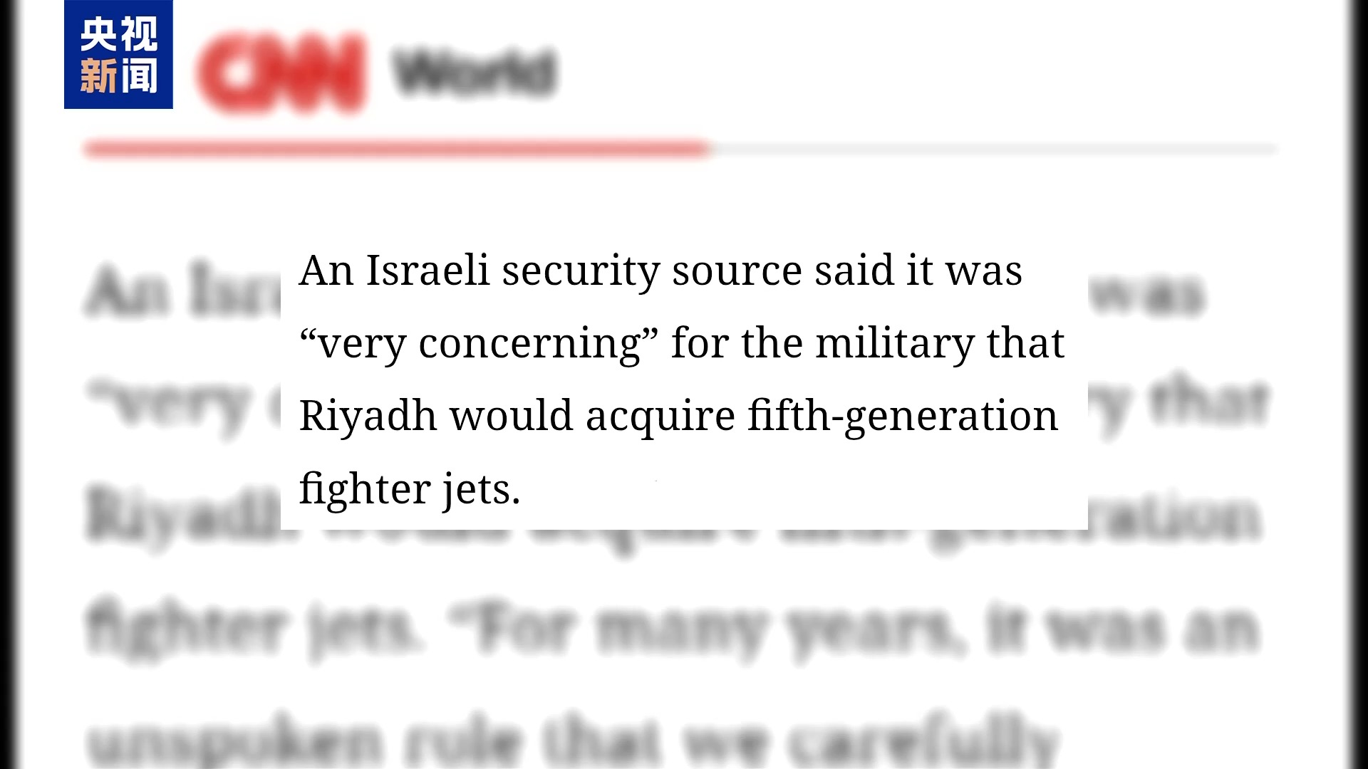中国现代国际关系研究院中东所副所长 秦天:这种军售使得沙特很有可能拥有F-35,这在理论上侵蚀了以色列在中东所谓的军事质量优势,对以色列也是不利的。但与此同时,以色列也不太敢公开地、强烈地表达不满,但不排除以色列私下做游说工作,比如说在美国国会阻止F-35战机销售的审批进程,或者说服美国给沙特卖低配版的F-35,性能不如美国给以色列出售的F-35战机。