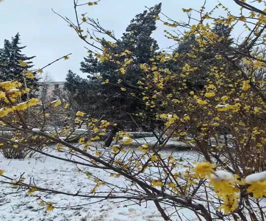 玉兰争先已吐色,报春枝条先放花