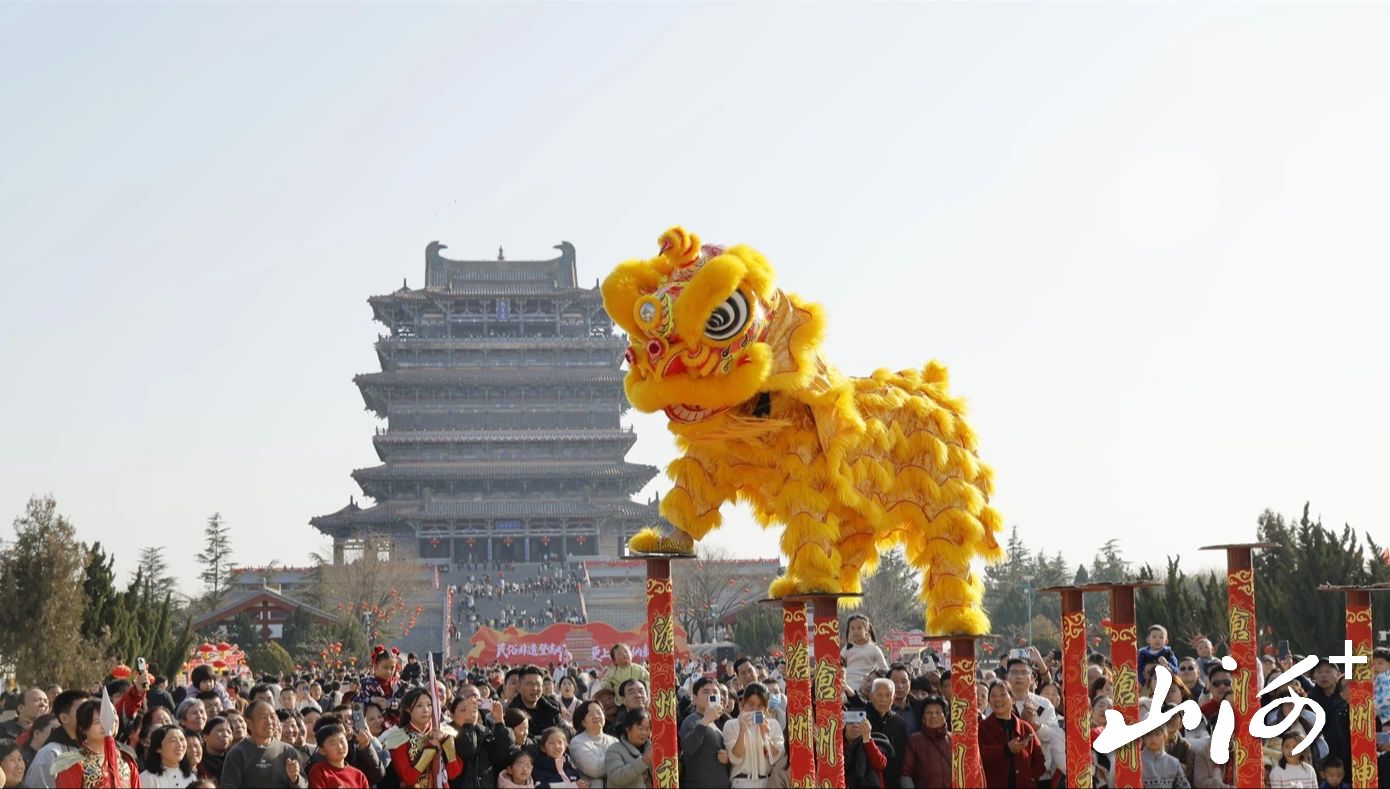 在中华名楼鹳雀楼,踩高跷、舞狮等民俗展演轮番登场、全天不断。游客登高纳福,饱览黄河风光;下楼入市,尽赏民间绝艺,在喜庆热烈的氛围中,完成一场别具风情的文化巡礼。游客中,不乏从陕西西安、河南郑州等地远道而来的客人。