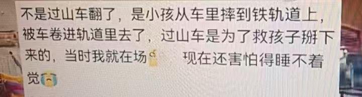 事件引发广泛关注,不少网友在社交平台留言关心女童伤情。有疑似目击者称:“小孩从围栏底部钻入轨道区域,被行驶中的过山车卷进轨道下方。我当时就在现场,现在还害怕得睡不着觉。”