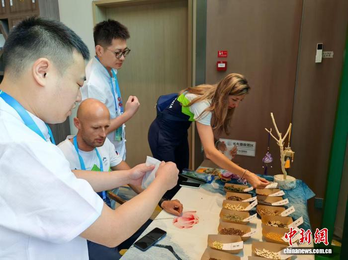 外籍涉赛人员体验中医香囊制作。成都世运村中医理疗中心供图