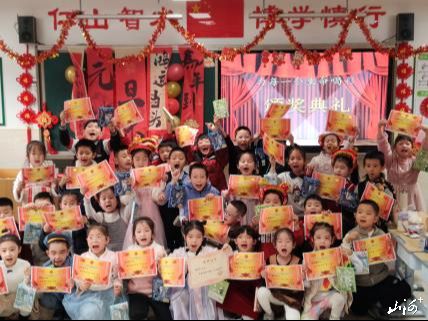 校园里,彩带、气球、红灯笼与孩子们亲手绘制的贺卡、画作交相辉映,处处洋溢着浓厚的节日气息。活动在“山水润新芽,星光耀华年”2025年度颁奖典礼中拉开帷幕。学校通过线上直播,集中表彰了在省、市、区各级比赛中荣获佳绩的学子,以及“山水好少年”“优秀班干部”“科技小达人”等十余类校级先进个人,并颁发“山水好家长”“优秀班级”等集体荣誉,表彰总人次逾千,充分展现了师生一年来的奋斗足迹与丰硕成果。