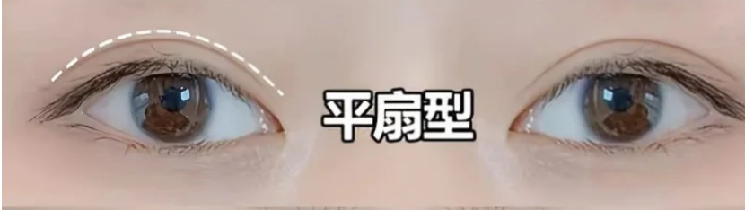 2.平扇形:双眼皮皱褶线顺着内眼角皮缘外呈现出来,越往外约稍宽点。