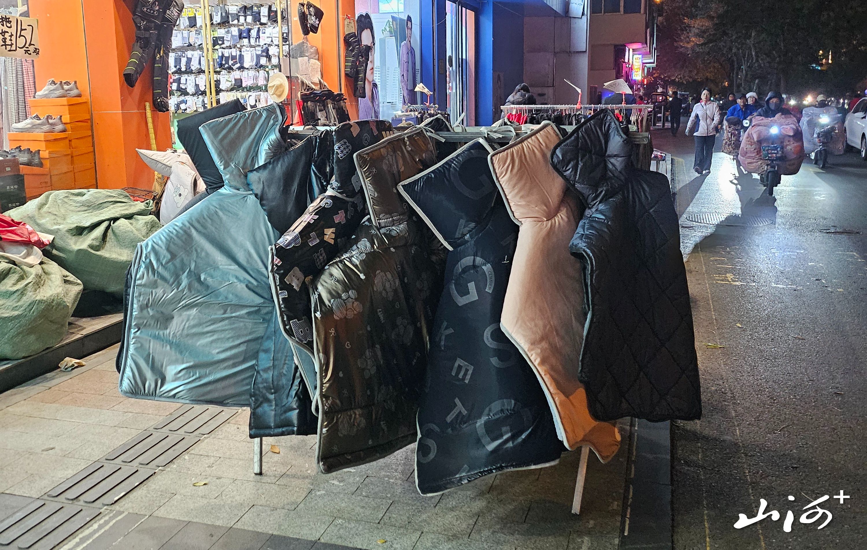 山西晚报·山河+记者在超市、路边都看到了售卖挡风被的身影。“79块钱、59块钱、39块钱的都有,薄厚不一样,你自己挑着看。”老板说完,便帮刚买了挡风被的顾客安装了。“实在一下都等不了了,冻死了。不然从网上买还能便宜点。”顾客边跺着脚边说道。山西晚报·山河+记者发现随着价格的增加,挡风被的厚度和大小也在增加,甚至最贵的能将骑行者整个肩膀都挡得严严实实的。