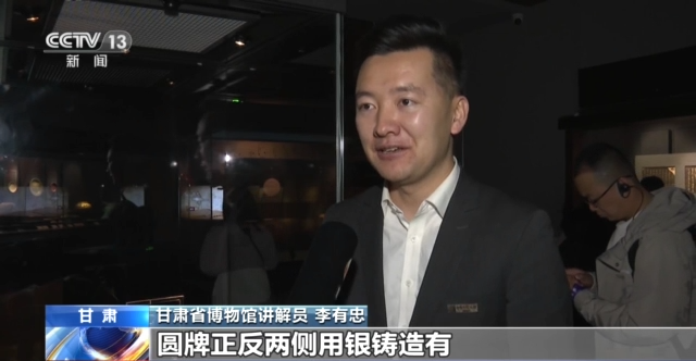 甘肃省博物馆讲解员 李有忠:通身铁质,我们仔细观察可以看到,老虎的眼睛、鼻子、嘴巴都刻画得非常写实。圆牌正反两侧用银铸造有元代时期的官方文字,叫做八思巴文。有着700多年历史的八思巴文虎符圆牌,也成为丝绸之路上不同地区、不同民族之间政治、文化、经济交流的实物见证。