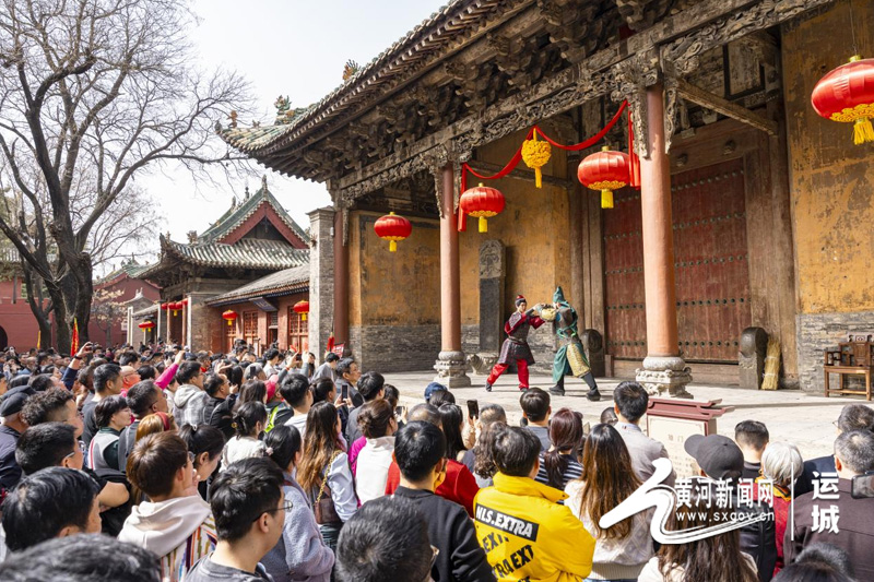 2月21日,运城关公故里文化旅游景区游人如织。 民间素有正月初五“迎财神”的习俗,作为“武财神”关公的故里,当天景区迎来客流高峰,来自全国各地的游客在此感受别样的年俗文化。