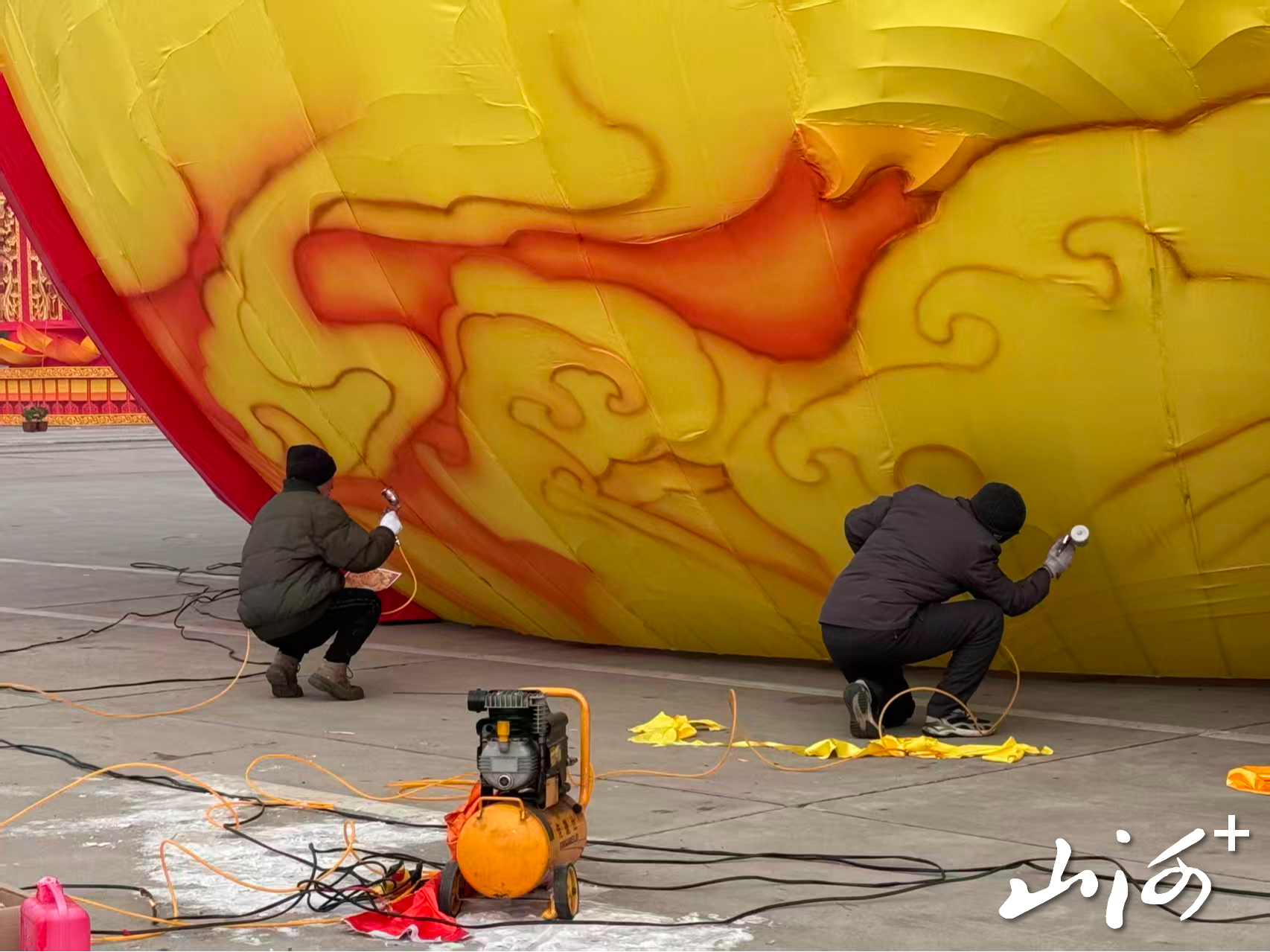 山西晚报·山河+讯 2月10日,时值农历小年,记者在怀仁市仁德广场看到,工人们正在加紧进行花灯制作、组装与调试作业,焊接、裱糊、布线、安装等工序有序开展,现场一派繁忙火热的景象。为迎接马年新春佳节,该市八大广场主题灯展已进入全面赶制冲刺阶段,一盏盏精致花灯即将点亮城市街头,营造喜庆祥和的节日氛围。