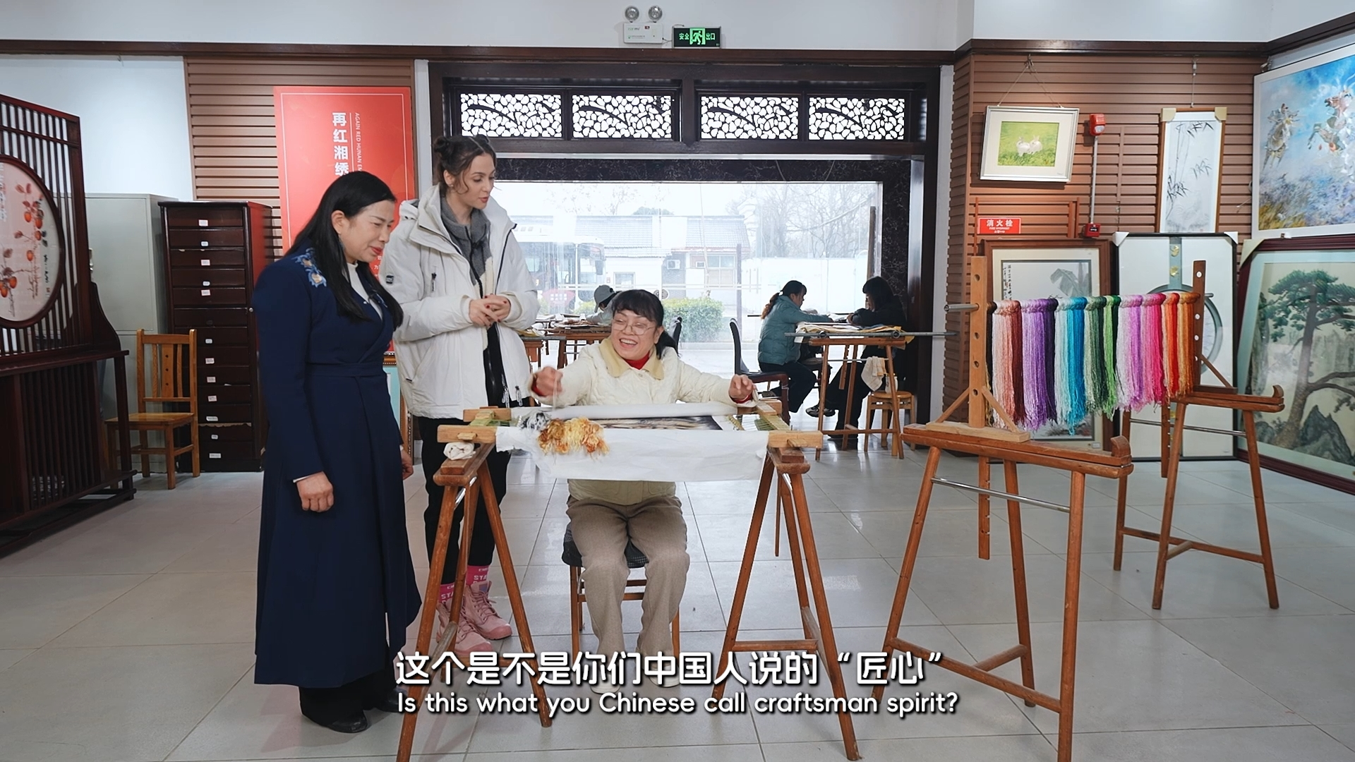 亲自上手体验时,Lili更是倍感艰难,十分钟仅绣出四针,稍一用力线头就凸起,甚至针身隐没只剩丝线。而一幅精品雄狮绣品,单只眼睛就要绣一个多月,整幅作品需两位绣娘耗时一年完成;更有匠人深耕湘绣五十余载,用一生坚守一门手艺,完美诠释匠人匠心。亲手实践后,Lili终于懂得,湘绣的高价,是无可复制的手艺、漫长时光与文化传承的共同价值。