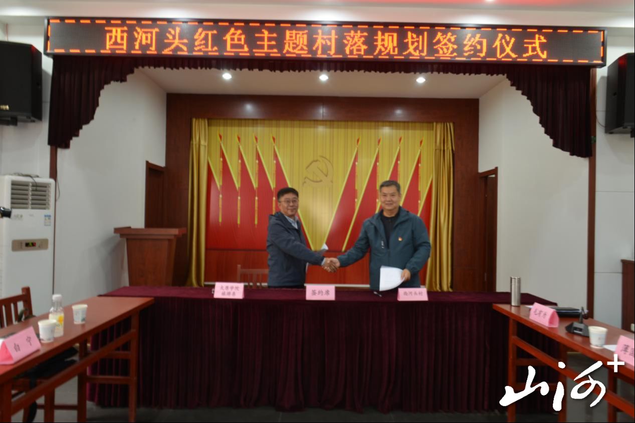 在随后举行的红色主题村落策划项目签约仪式上,太原学院旅游系主任张煜与西河头村党支部书记兰庆利代表双方签约。张煜表示,旅游系将充分发挥学科与人才优势,推动红色资源创新转化,助力西河头村打造具有影响力的红色文旅示范村。晋昌镇党委书记信宇飞在总结发言中表示,镇党委将全力支持项目落地,期待以红色文旅为抓手,走出一条乡村振兴新路径。