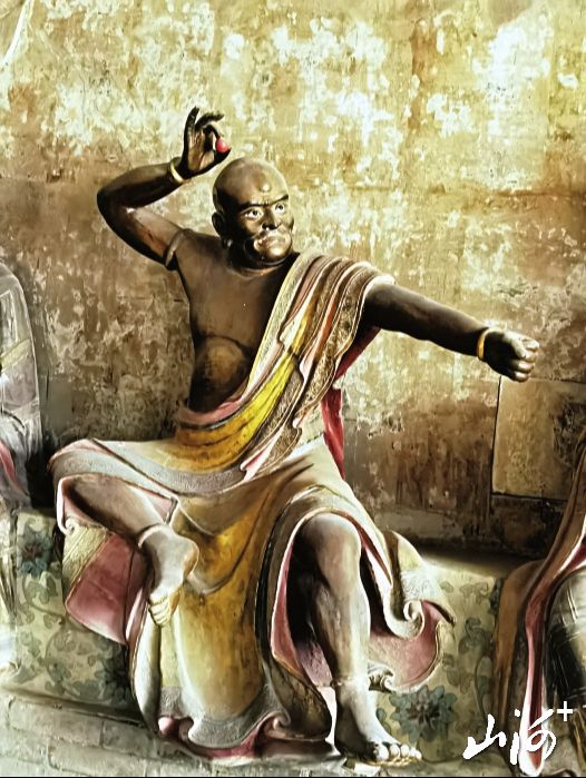 释迦殿内的释迦牟尼、文殊、普贤等彩塑,表情自然,比例和谐,一改唐代宽胸细腰之风,具有极高的艺术价值。