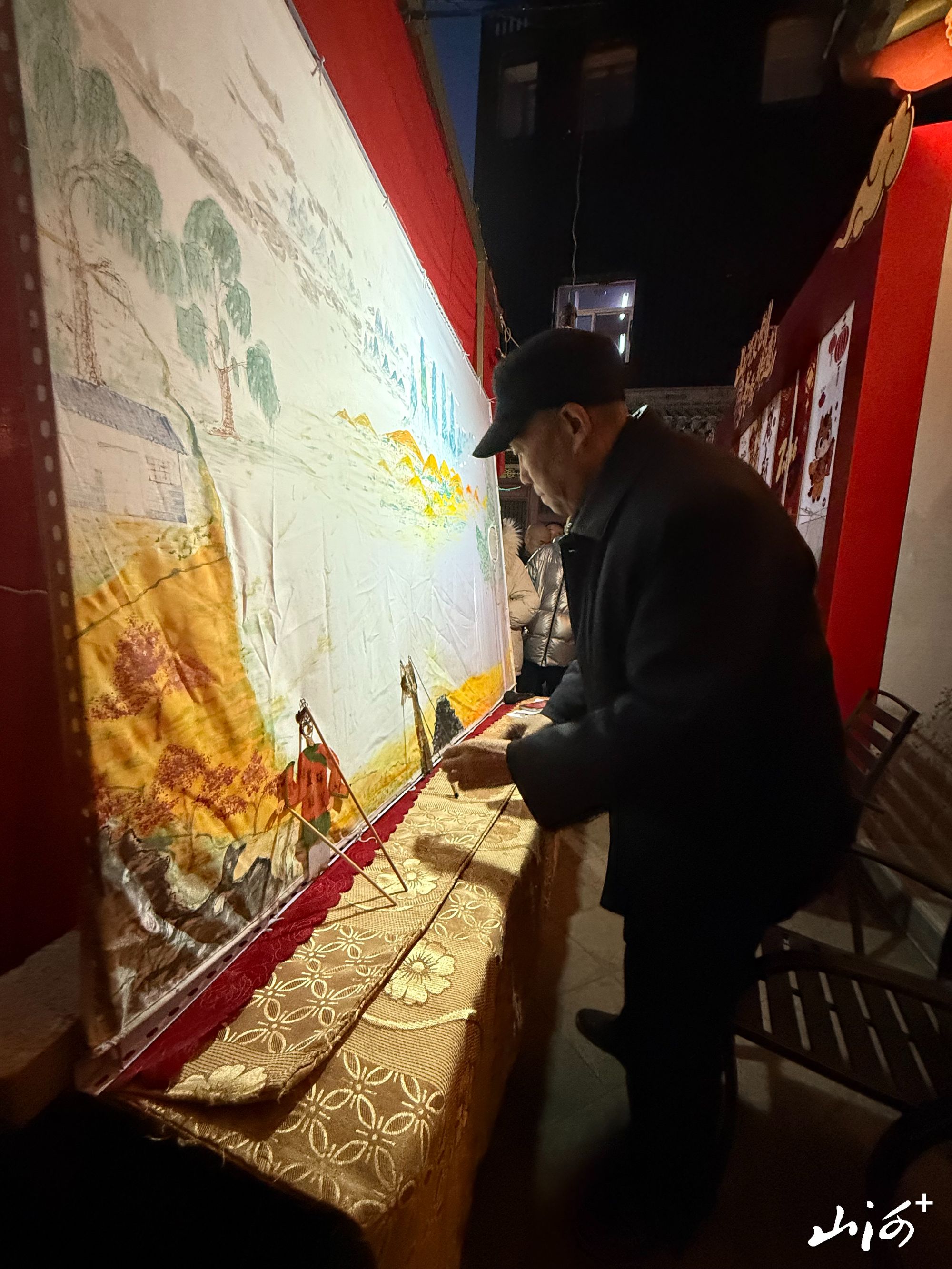 夜幕降临,太原钟楼街华灯初上,古街流光溢彩、年味氤氲。坐落于街区核心的钟楼书院内人潮如织,青砖古院间红灯高悬、墨香萦绕。晚上6点半,钟楼书院三进院内,一场精彩的皮影戏正在上演,太原香坊戏第八代传承人、皮影戏非遗表演者白爱明老师手持影人、操控竹杆,幕布之上光影流转、人物灵动,引得现场市民与游客阵阵喝彩。