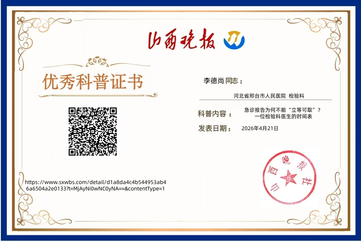 作者:河北省邢台市人民医院 检验科 李德尚