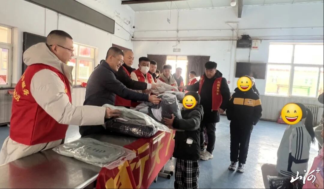 活动首站,慰问团一行来到了娄烦县天池店乡第二寄宿制小学,以“汇聚青春力量,共建‘希望小屋’”为主题,为校内14名家庭条件困难的小学生送上了精心准备的冬季保暖衣物和新书包。孩子们接过这份充满爱意的礼物,脸上绽放出灿烂的笑容。青联委员与俱乐部志愿者详细了解孩子们的学习生活情况,鼓励他们树立信心,勤奋学习。