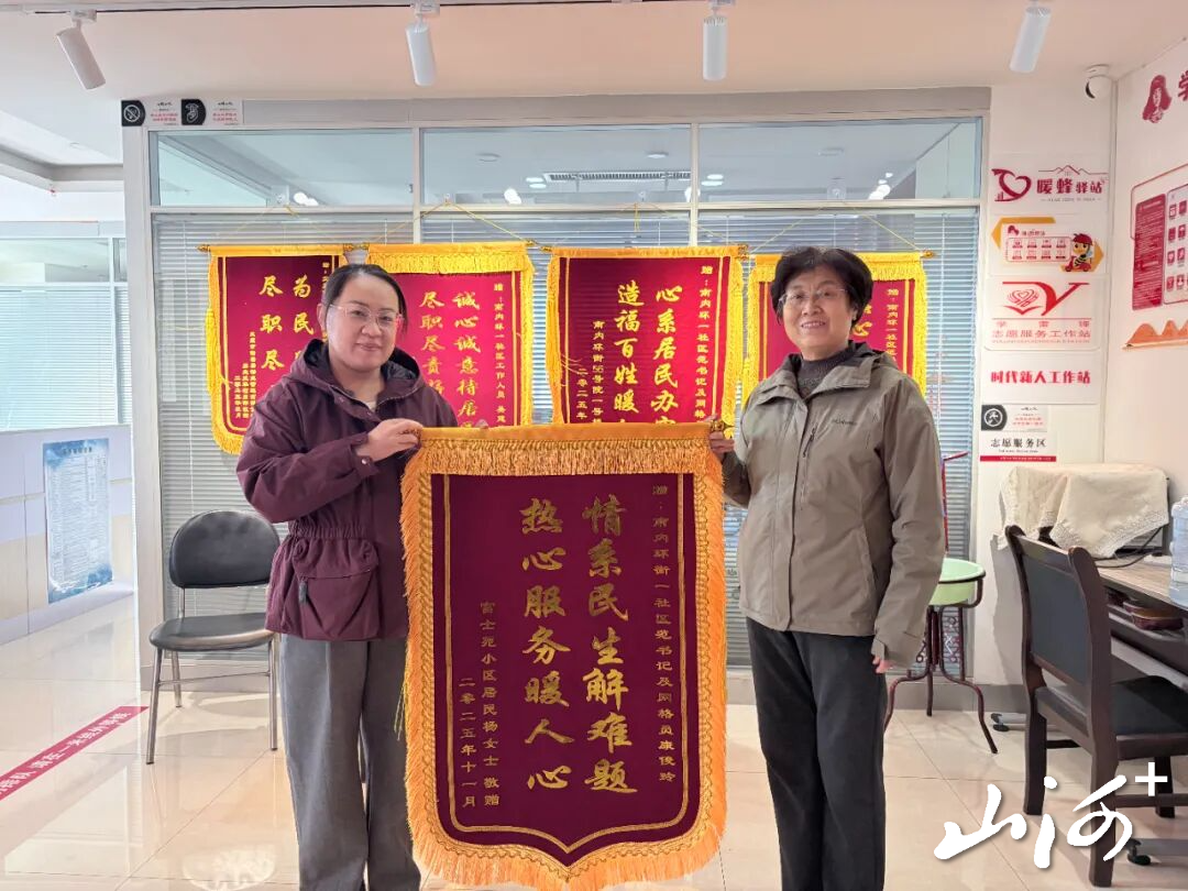 山西晚报·山河+讯 近日,太原市小店区富士苑小区一户业主,将一面写有“情系民生解难题,热心服务暖人心”的锦旗,送到了营盘街道南内环街一社区“小爱有话说”办公室,感谢社区倾力协调解决困扰业主的邻里漏水问题。