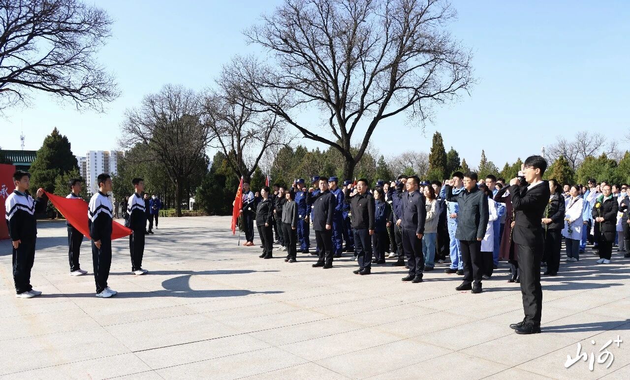 山西晚报·山河+讯  春风拂松柏,哀思寄忠魂。3月31日,“红色耀三晋 青年永传承”清明祭英烈主题团日活动在太原牛驼寨革命烈士陵园隆重举行。团省委及机关支部代表,团市委及机关干部及团员青年代表共550余人参加了活动。