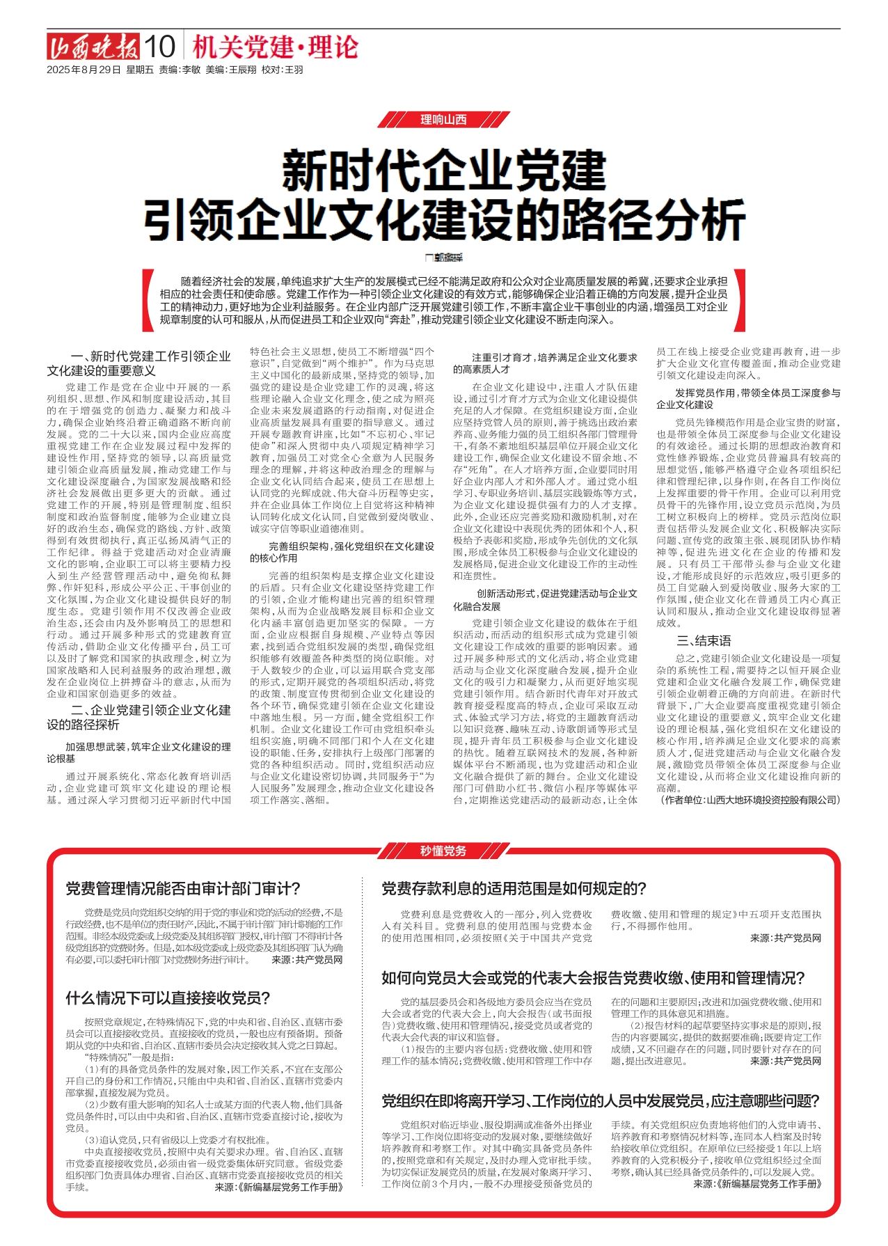发挥党员作用,带领全体员工深度参与企业文化建设