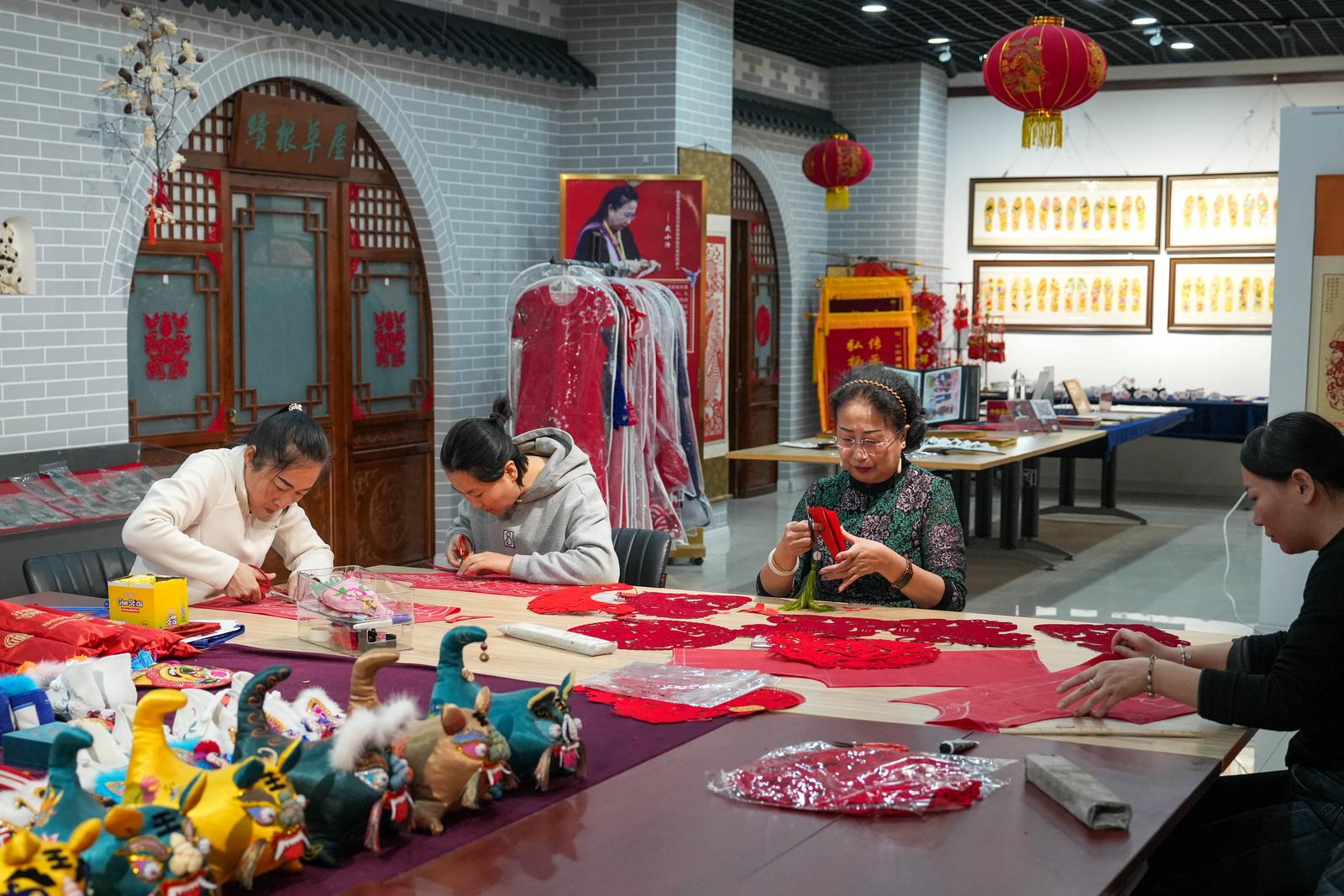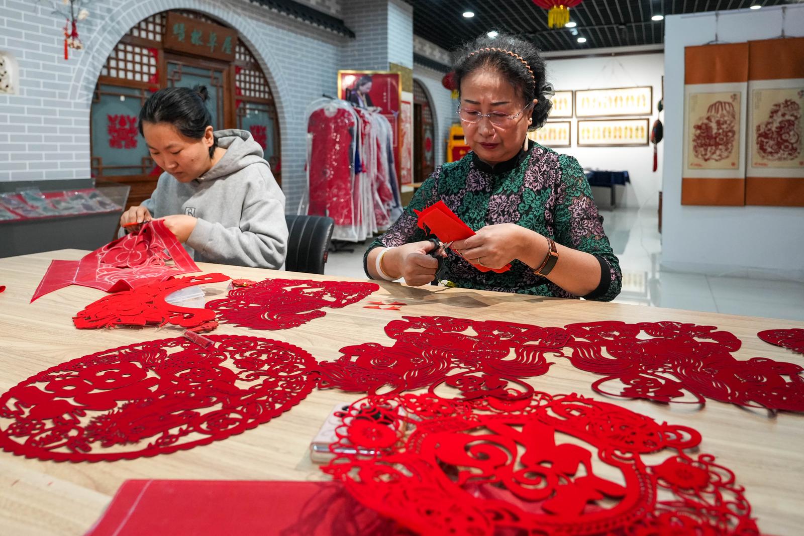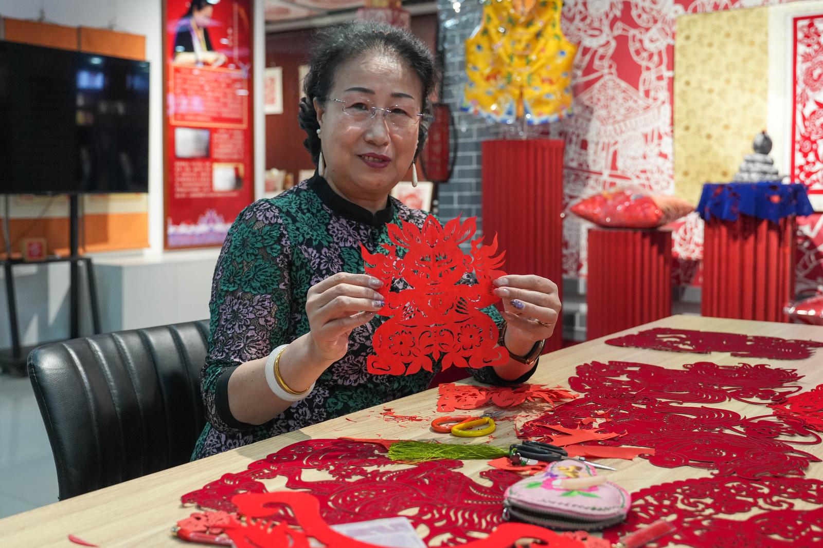 “抓髻娃娃、鱼跃龙门、百鸟朝凤等经典纹样,寓意与剪法各不相同。”2月4日,在吕梁市中阳县一家剪纸工坊内,市级非遗代表性传承人武小汾边剪纸边介绍。多年来,她潜心钻研技艺,让中阳剪纸焕发出现代光彩。中阳剪纸扎根于黄土高原,2006年入选首批国家级非物质文化遗产名录。