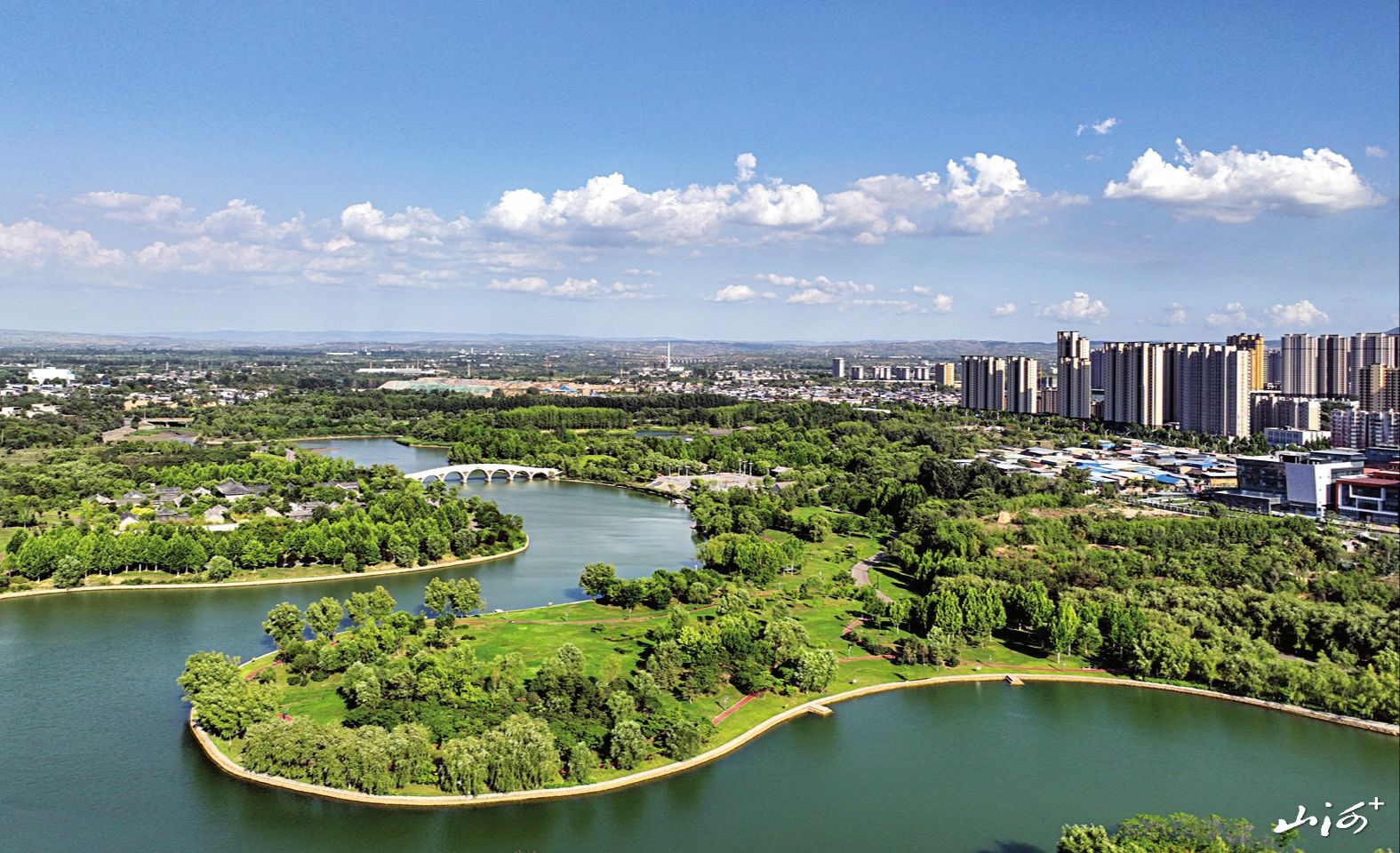 在临汾城区,蓝天白云碧水已成常态。