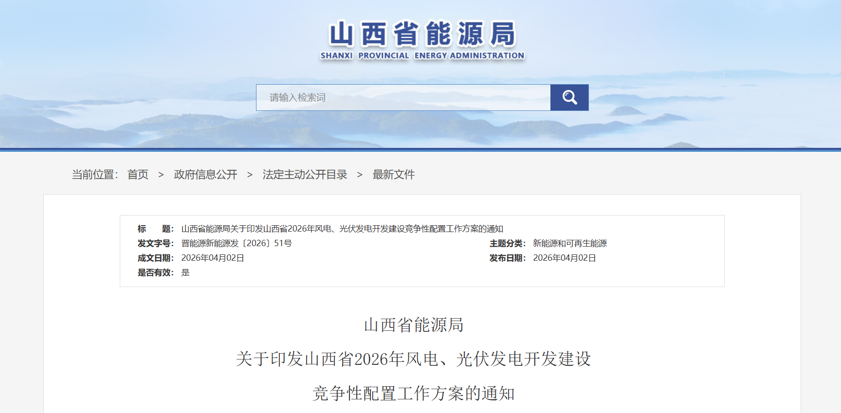 山西启动2026年风电、光伏发电项目竞争性配置工作
