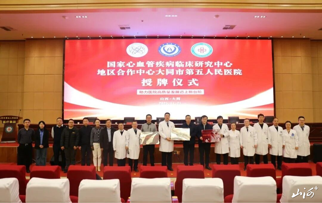 山西晚报·山河+讯 11月21日,国家心血管疾病临床医学研究中心大同地区合作中心落户大同市第五人民医院,同时李海洋教授专家工作室和龙德勇教授专家工作室成立。