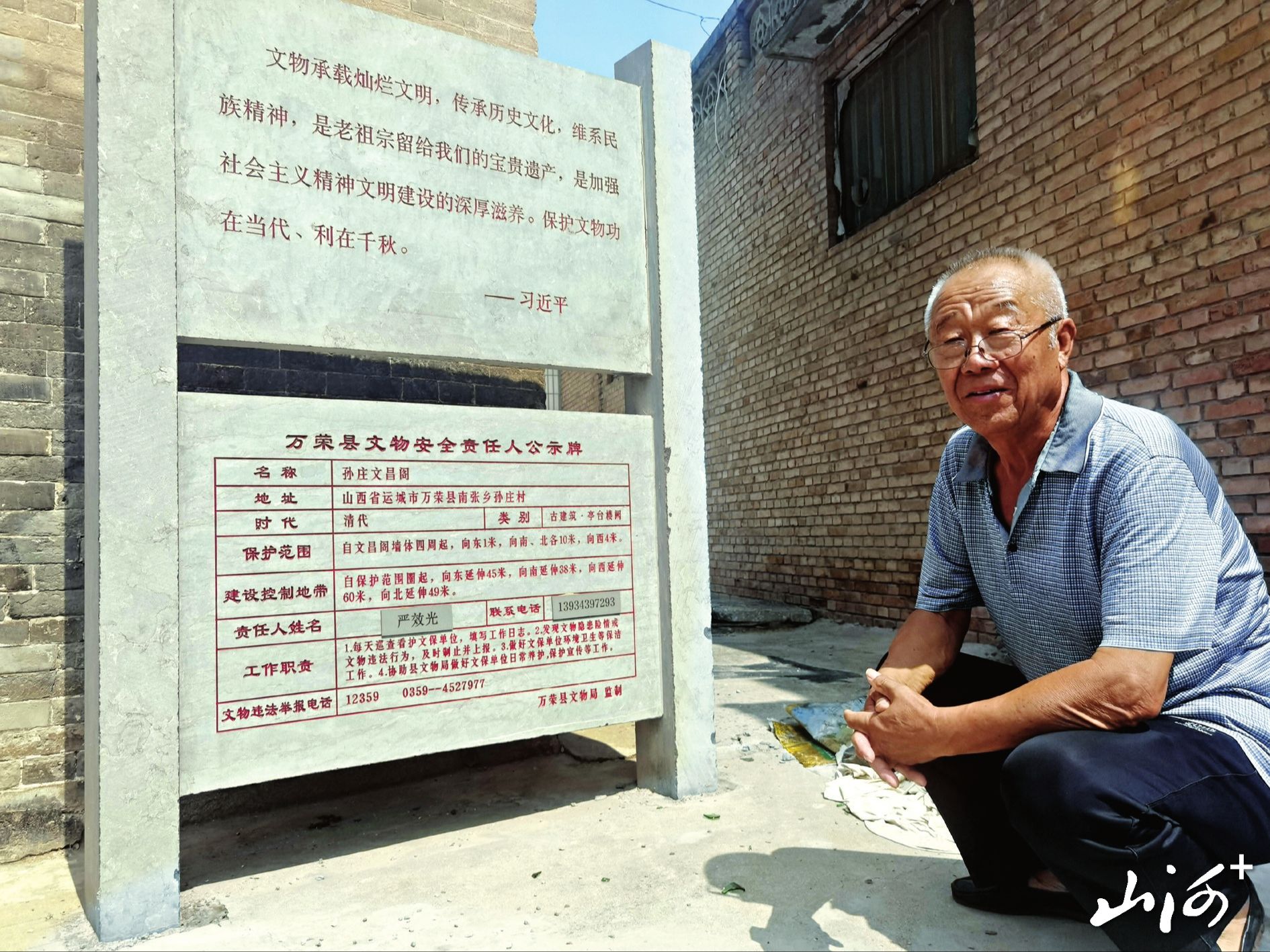 “你看这块碑,”严效光蹲在文昌阁下青石刻字的“万荣县文物安全责任人”公示牌前,指着上面的字笑呵呵地说,“公示的责任人是我,留的联系方式是我的手机号,就是文昌阁的守护,也是我负责。”