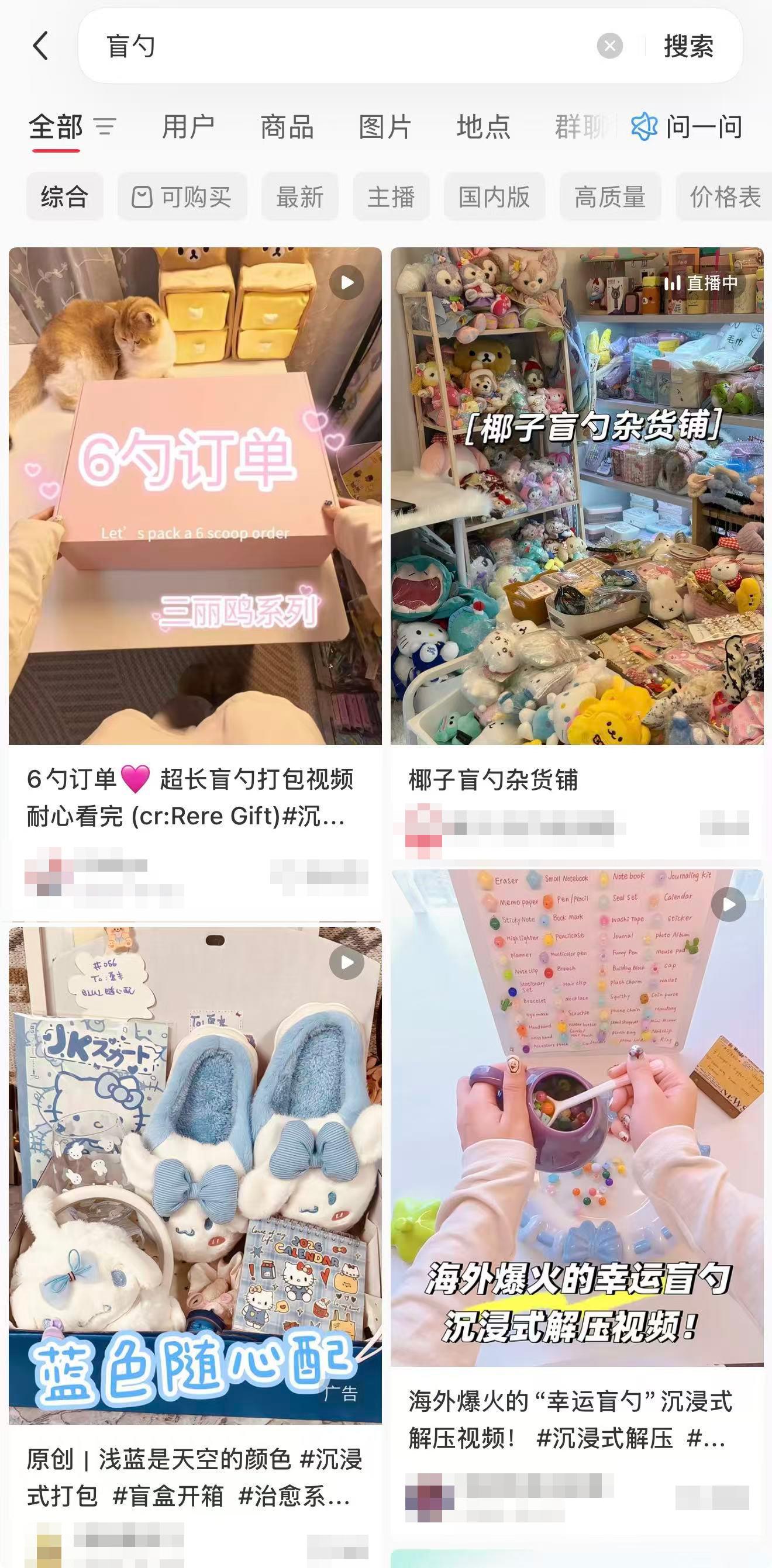 记者通过一些商家在社交媒体平台上传的视频发现,“盲勺”随机舀出的物件多是可爱精巧的小商品,比如橡皮圈、小玩偶、卡通贴纸、小文具等。卖家多集中在青少年或者年轻人聚集的社交平台。同时,记者在某社交平台多个“盲勺”商品链接下的留言区看到,多位消费者对商品价格提出疑问。