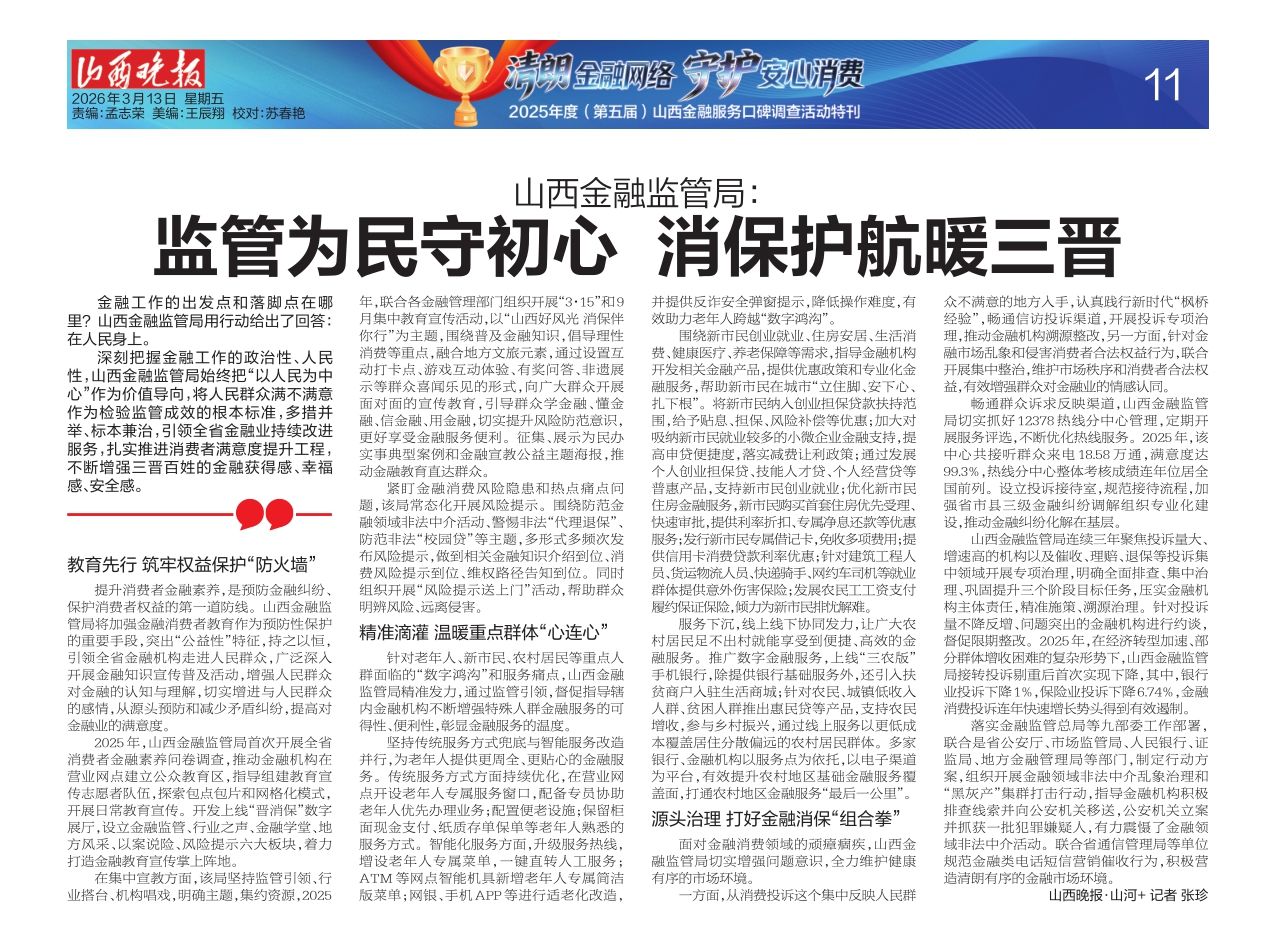 金融工作的出发点和落脚点在哪里?山西金融监管局用行动给出了回答:在人民身上。