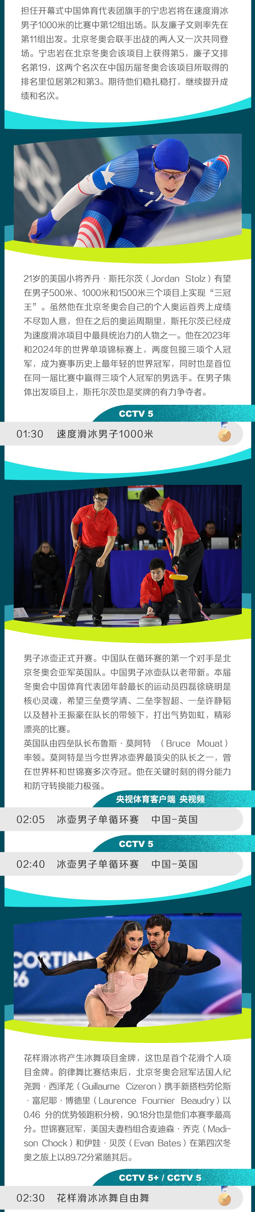 米兰-科尔蒂纳冬奥会开幕后第五比赛日,中国选手多项参赛,速度滑冰“大魔王”登场亮相。