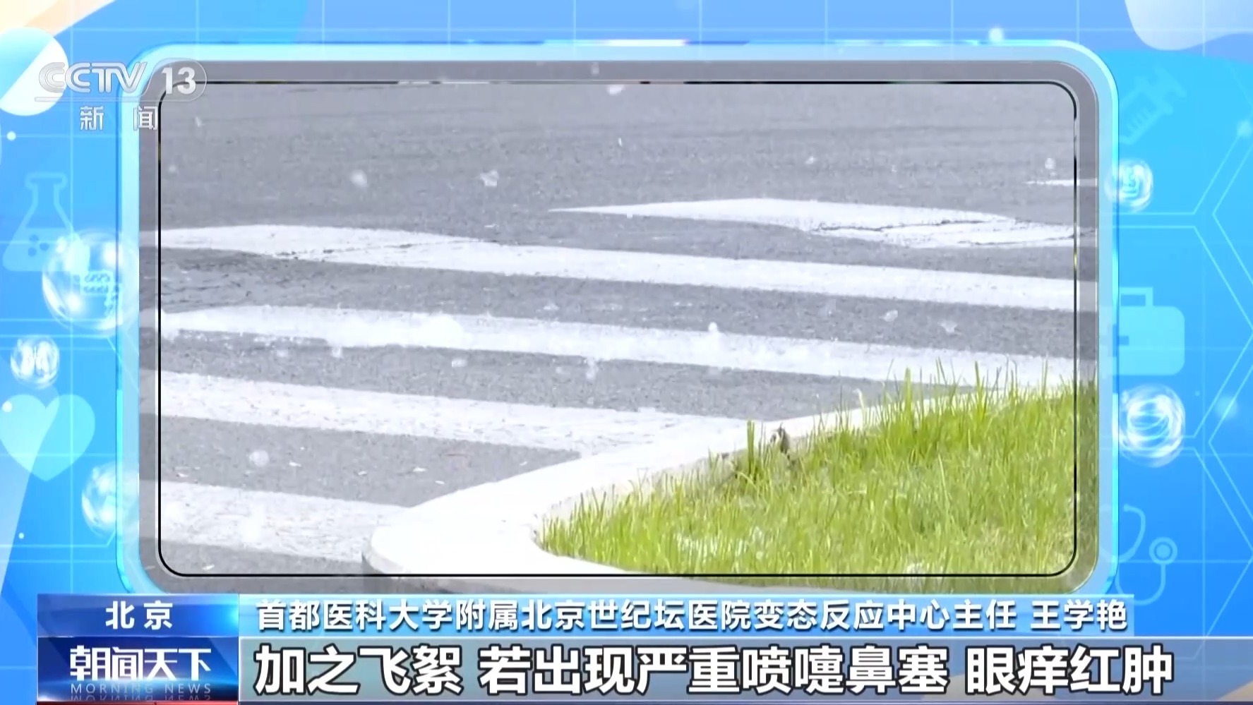 首都医科大学附属北京世纪坛医院变态反应中心主任 王学艳:一旦飞絮进入鼻腔接触眼结膜或皮肤时,其携带的过敏原会引发鼻痒、喷嚏、眼痒、流泪等不适。过敏体质者可能出现皮肤红斑、丘疹;有支气管炎、哮喘等基础病者,症状可能加重,甚至诱发并发症。
