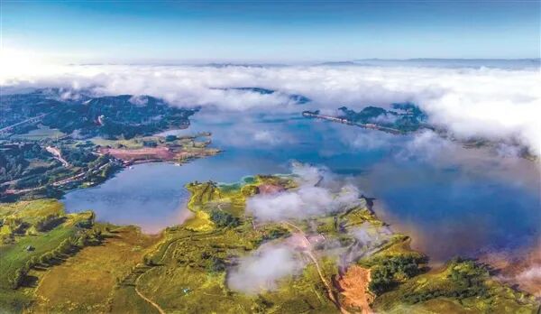 在不远处的二期旅游基础设施建设旅游驿站项目建设现场,项目经理姚衡正半蹲在刚平整完的边坡旁,拿着标注着绿植预留区的施工图和施工组长核对点位。这幅鲜活的春日图景,正是榆社县推进云竹湖国家级旅游度假区创建的生动注脚。