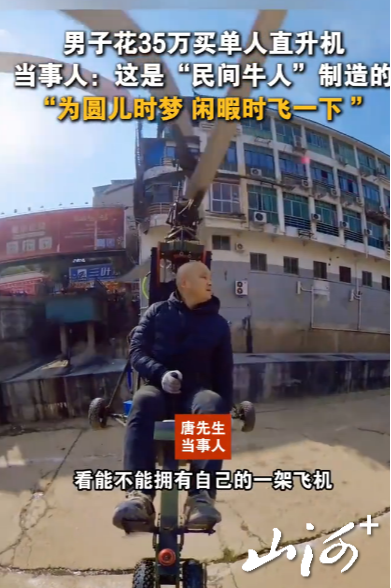 9月28日,山西晚报·山河+记者搜索唐正兴生前所发视频发现,他在驾机试飞时曾介绍,其自购的这架飞机——共轴双桨超轻型飞机(2024年),为民间牛人制造,共花费35万元,最高飞行海拔600米,航程约40公里。购入后,他花了9个小时练习就掌握的基本技能。“买了这个直升机,也是为了圆儿时的看天梦,平时闲暇会飞一会。”