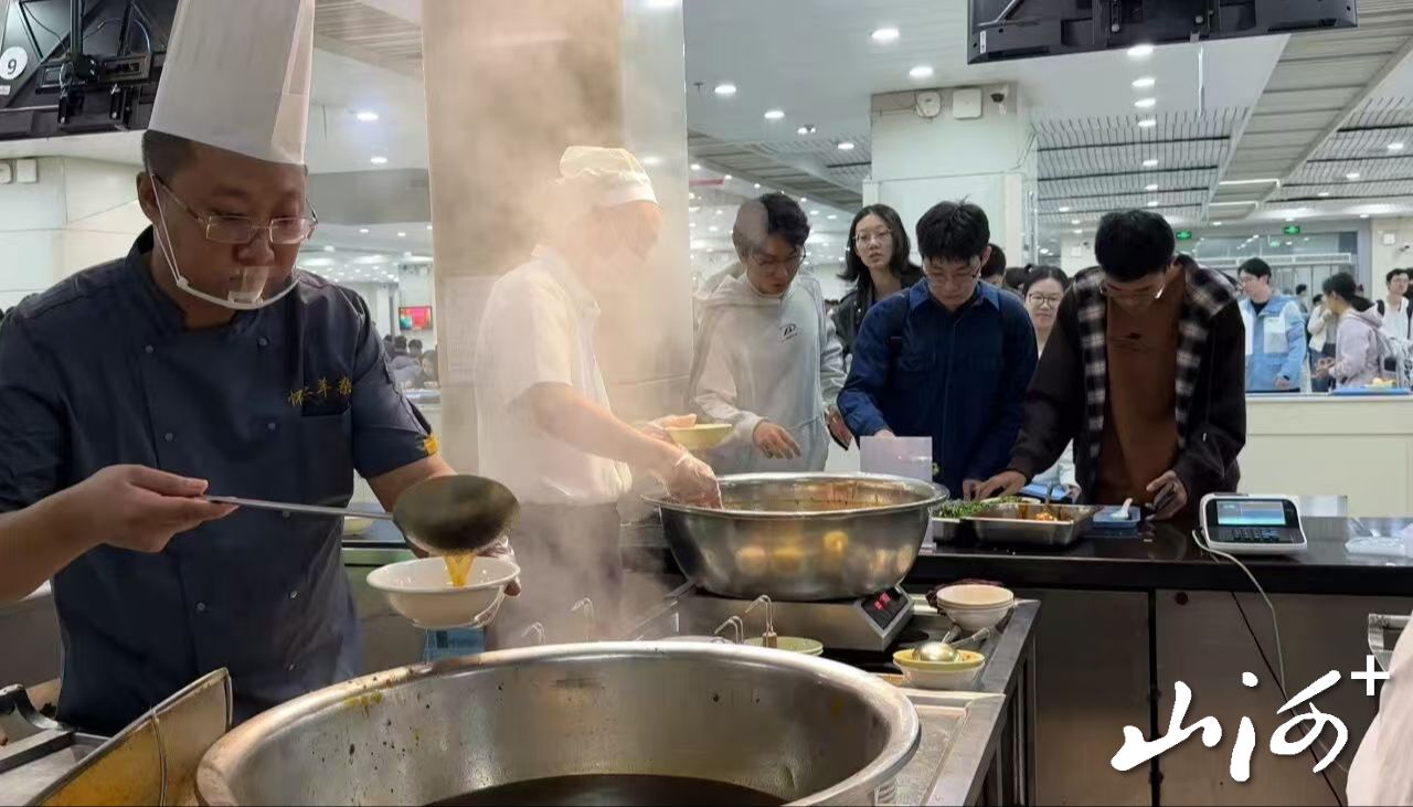 活动当天,食堂内早早便排起了长队,师生们循着香气驻足等候。羊心、羊肝、羊肠等新鲜食材在秘制高汤中慢火细炖,出锅时搭配怀仁本地土豆粉,淋上一勺秘制红油辣椒,瞬间色泽诱人。入口时,杂碎软烂不柴、味道十足,麻辣鲜香在舌尖交织,醇厚汤汁裹挟着食材本味,鲜而不腻。来自山西的学生们吃完后纷纷表示:“能在杭州吃到家乡味道,太惊喜了!”
