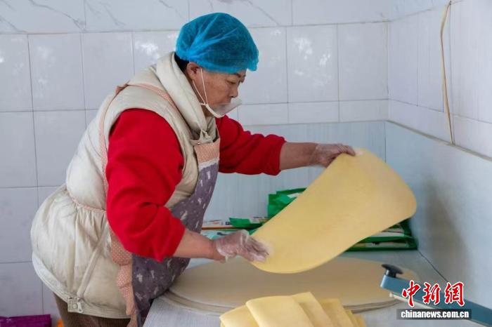 腊月以来,黄蒸的销量持续走高,高峰期日销近两千个,像马媛这样的手艺人也因此更加忙碌。在襄垣古韩镇甘村煎饼加工坊内,“煎饼姐”崔鲜梅同样忙碌,“这两天走亲访友用得多,再加上返乡大学生直播带来的订单,所以特别忙。”