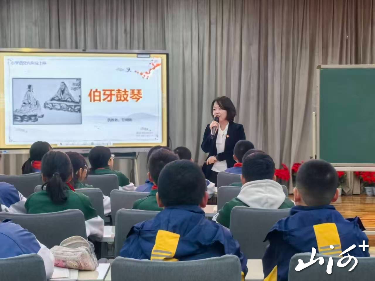 王瑞瑞副主任执教《伯牙鼓琴》,以单元导读要点明确学习目标,通过“读—说—思—悟”阶梯式教学融合方法习得与文化浸润。朗读环节注重韵律培养,让学生在书声中勾勒故事画面;小组合作借助注释、插图疏通文意,拓展想象空间;教师引导学生畅想琴音与伯牙情志,将文字转化为可感体验,助力学生理解“知音难觅”的珍贵与“高山流水”的文化内涵。