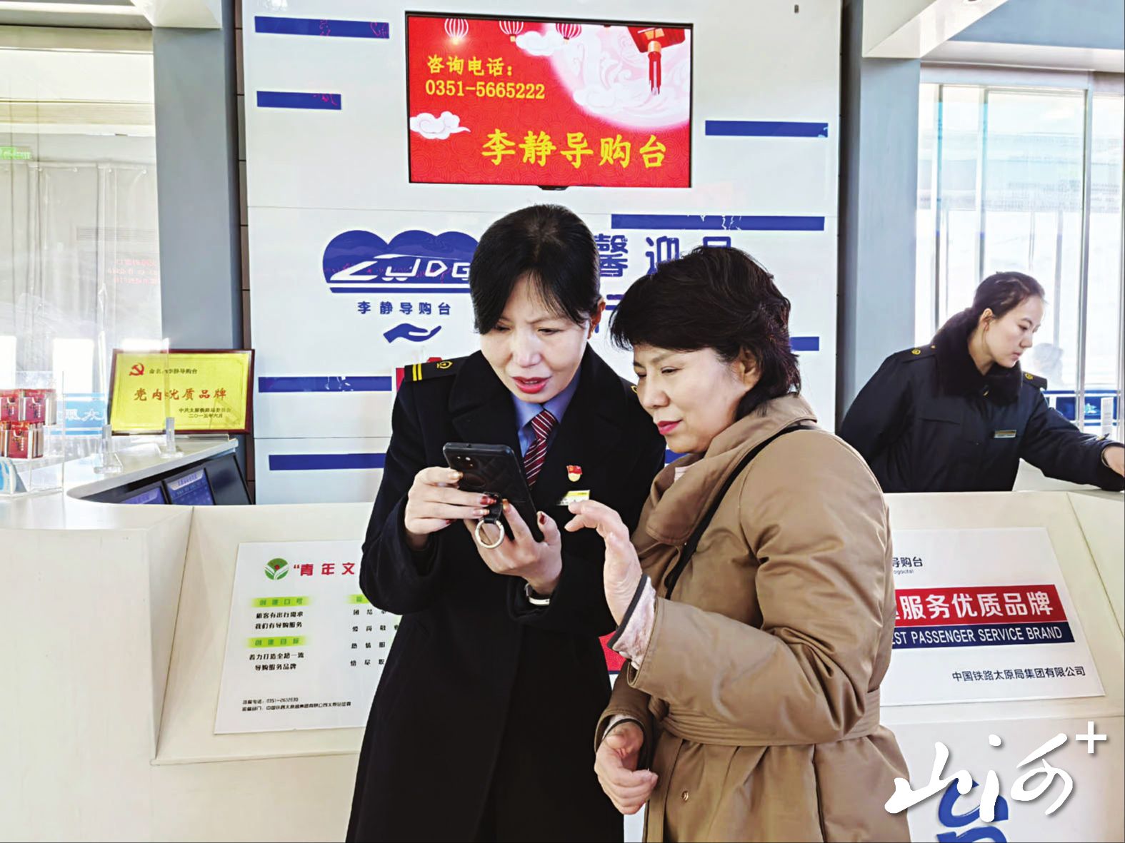 2月7日9时15分,太原南站候车大厅电子屏滚动显示着最新的车次信息,节前返乡客流迎来一波小高峰,广播里循环播报着静音车厢、重点旅客服务、余票查询等温馨提示。“李静导购台”前依旧围满了问询的旅客,此起彼伏的咨询声里,李静与两名值班员分工协作,一人负责退改业务引导,一人负责重点旅客信息登记,李静站在最外侧,直面旅客最急切、最棘手的各类需求。