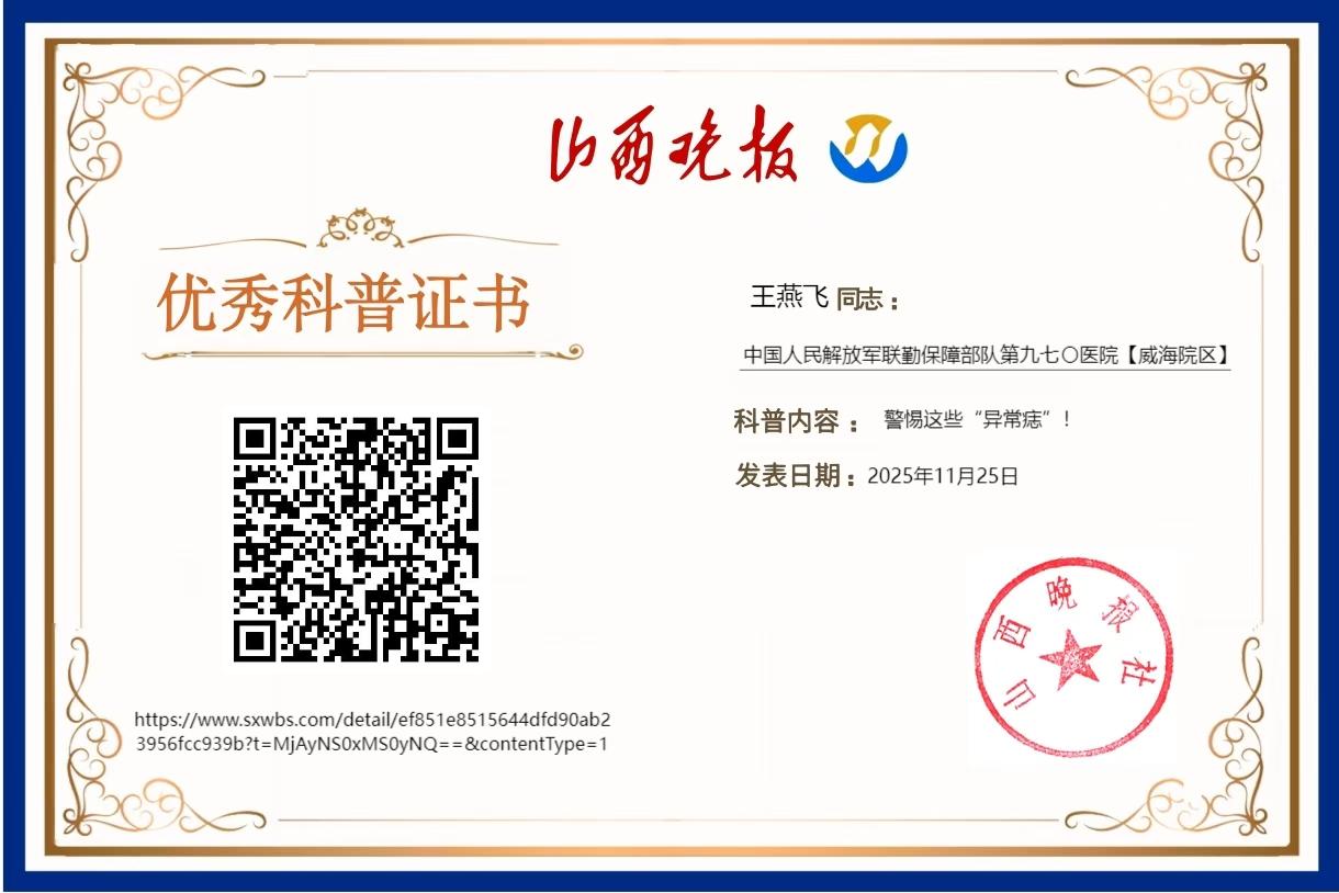 作者:中国人民解放军联勤保障部队第九七〇医院【威海院区】 王燕飞